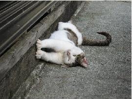 ↑玄関前で寝転がるフーちゃん。
